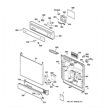 The Detergent cup cover is an OEM component for GE dishwashers. It serves to protect the detergent cup assembly while allowing for easy access. Made of durable plastic, the cover clicks securely into place during operation to prevent accidental opening.