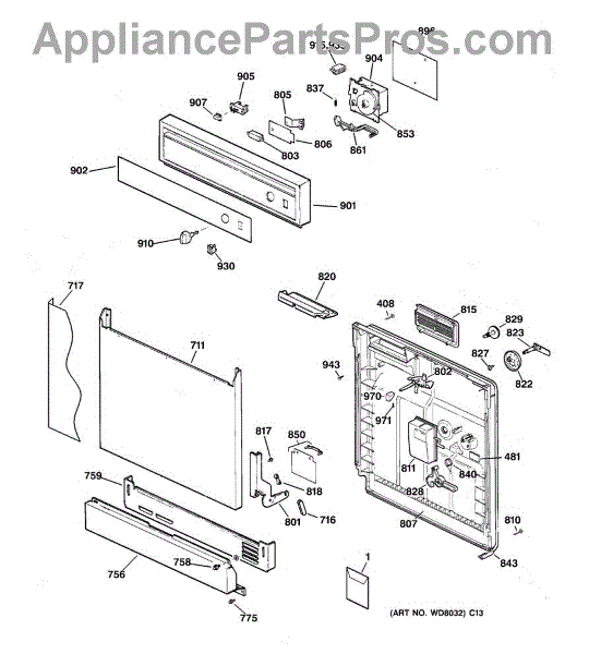 The Soap Dispenser Lever is an OEM part for GE dishwashers. It operates the soap dispenser door, releasing detergent into the dishwasher at the appropriate time during the wash cycle. This lever ensures that detergent is dispensed efficiently for optimal cleaning performance.