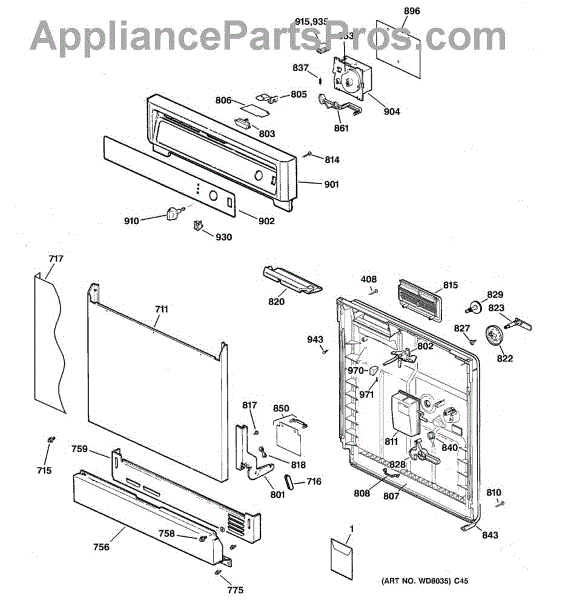 The GE screw is an OEM replacement part responsible for securing various components and parts of the dishwasher together. The screw is designed to provide a tight and secure connection for different panels, brackets, or other elements within the dishwasher. It plays a crucial role in maintaining the structural integrity of the appliance by preventing loose parts.