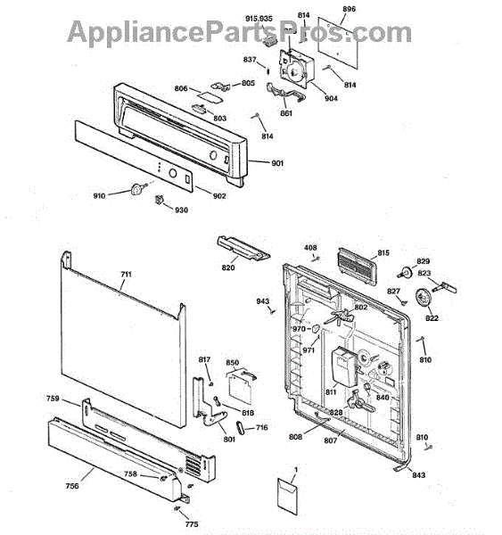 Parts for Ge GSD2000J20WW: Escutcheon & Door Assembly Parts