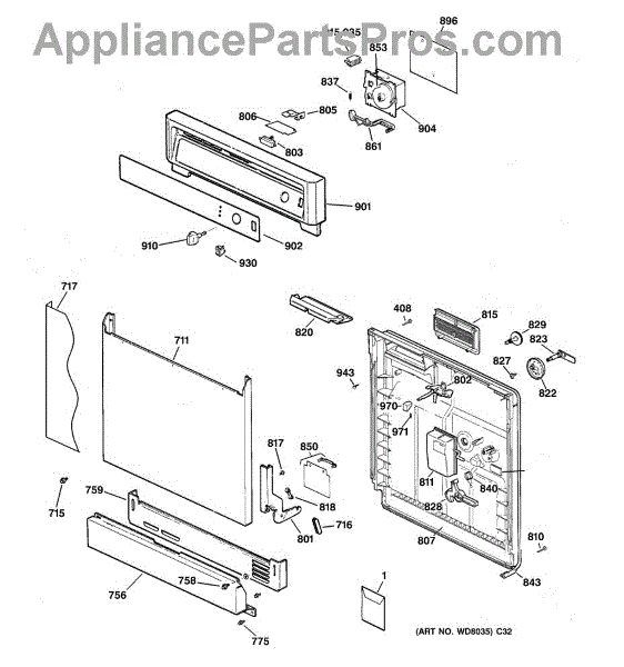 The Soap Dispenser Lever is an OEM part for GE dishwashers. It operates the soap dispenser door, releasing detergent into the dishwasher at the appropriate time during the wash cycle. This lever ensures that detergent is dispensed efficiently for optimal cleaning performance.