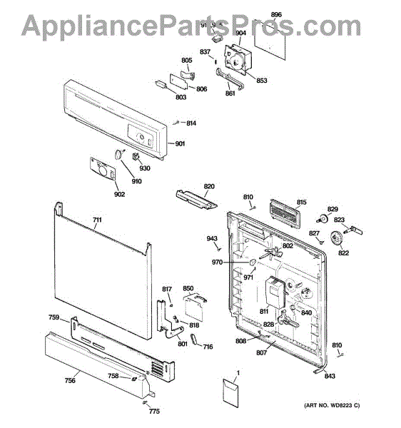 The Soap Dispenser Lever is an OEM part for GE dishwashers. It operates the soap dispenser door, releasing detergent into the dishwasher at the appropriate time during the wash cycle. This lever ensures that detergent is dispensed efficiently for optimal cleaning performance.