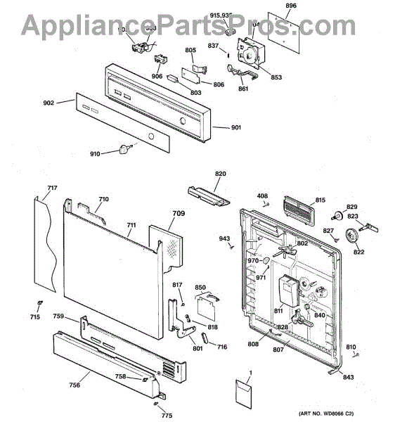 The Soap Dispenser Lever is an OEM part for GE dishwashers. It operates the soap dispenser door, releasing detergent into the dishwasher at the appropriate time during the wash cycle. This lever ensures that detergent is dispensed efficiently for optimal cleaning performance.