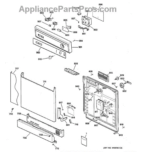 Parts for Ge GSD2201G20WW: Escutcheon & Door Assembly Parts
