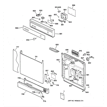 The Detergent cup cover is an OEM component for GE dishwashers. It serves to protect the detergent cup assembly while allowing for easy access. Made of durable plastic, the cover clicks securely into place during operation to prevent accidental opening.