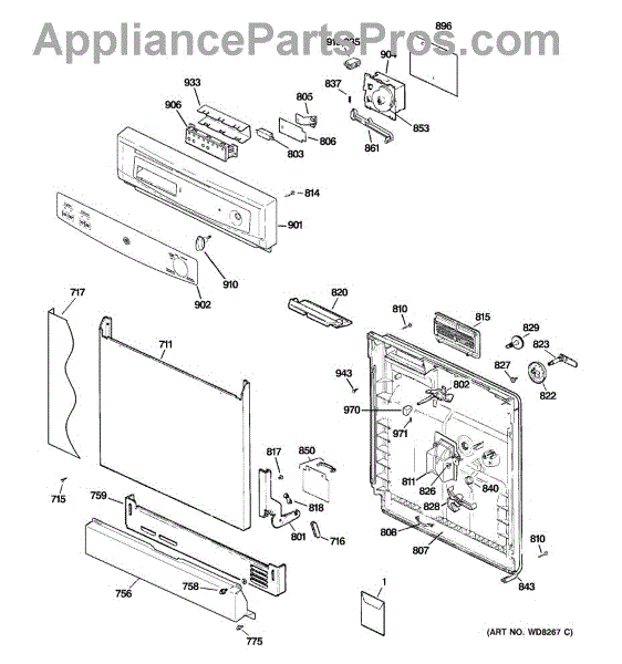 Parts for Ge GSD2300N10WW: 01 - Escutcheon & Door Assembly Parts