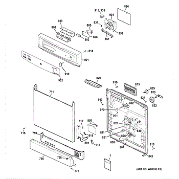 The Fill Cap Assembly is an OEM part for GE dishwashers. This assembly includes the cap that covers the opening where rinse aid or other additives are poured into the dishwasher. It ensures that the additives are securely contained and properly dispensed during the wash cycles, contributing to effective cleaning and drying.