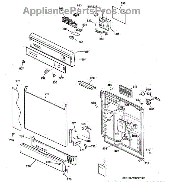Parts for Ge GSD2600G20BB: Escutcheon & Door Assembly Parts