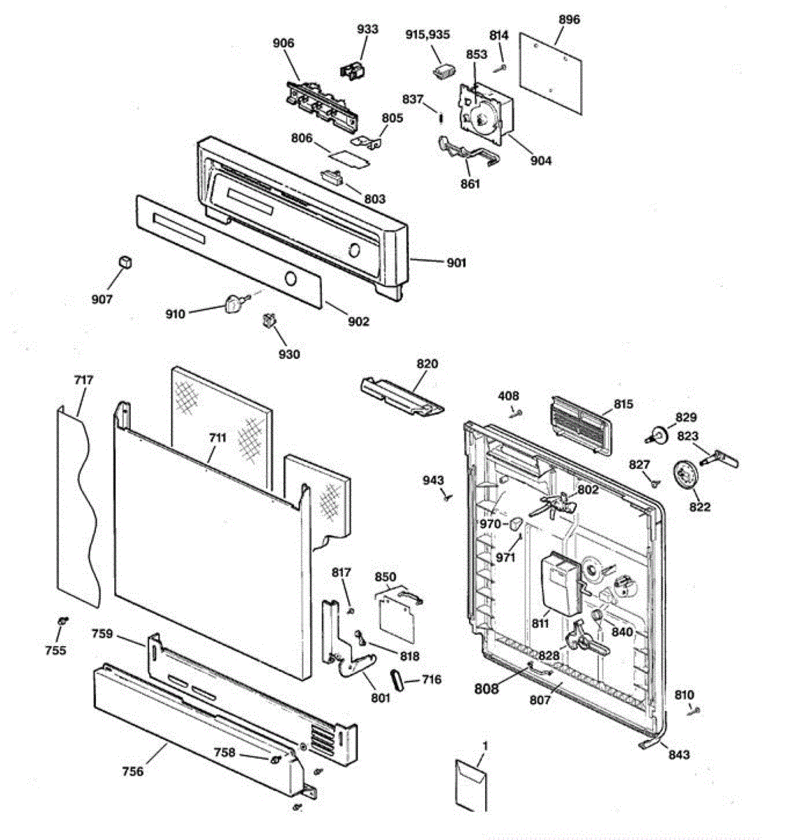 Parts for Ge GSD2700G20WW: Escutcheon & Door Assembly Parts