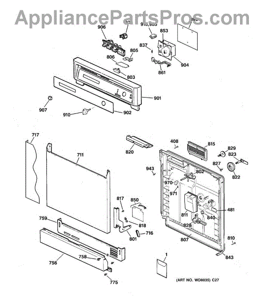 The Soap Dispenser Lever is an OEM part for GE dishwashers. It operates the soap dispenser door, releasing detergent into the dishwasher at the appropriate time during the wash cycle. This lever ensures that detergent is dispensed efficiently for optimal cleaning performance.
