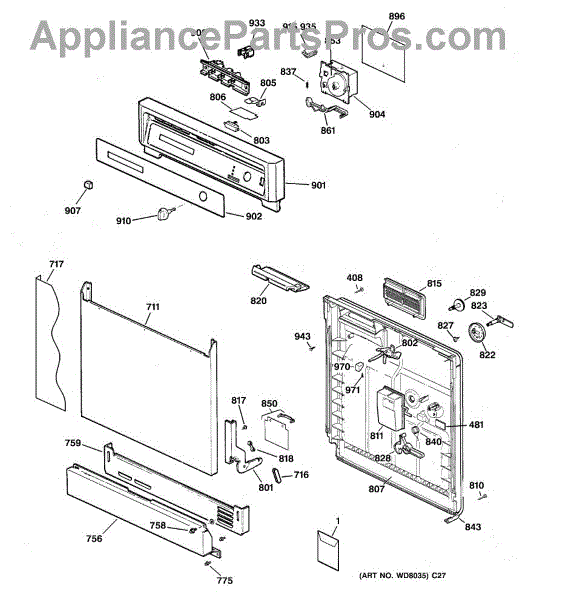 The Soap Dispenser Lever is an OEM part for GE dishwashers. It operates the soap dispenser door, releasing detergent into the dishwasher at the appropriate time during the wash cycle. This lever ensures that detergent is dispensed efficiently for optimal cleaning performance.