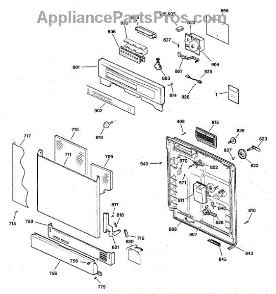 Parts for Ge GSD3400G20CC: Escutcheon & Door Assembly Parts