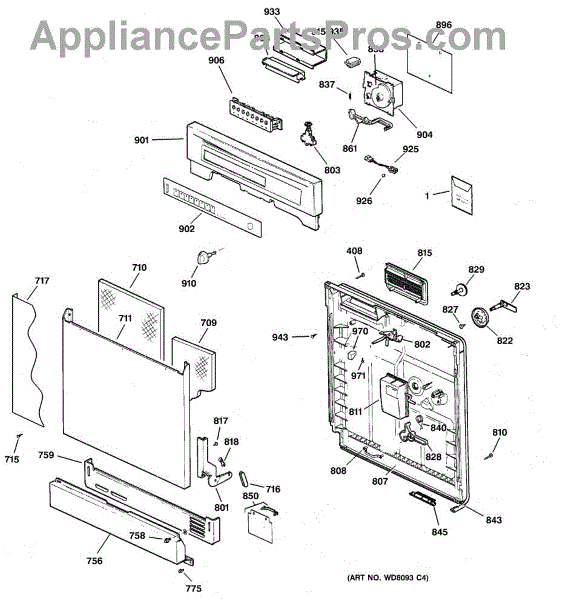Parts for Ge GSD3500G00WW: 01 - Escutcheon & Door Assembly Parts
