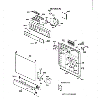 The Detergent cup cover is an OEM component for GE dishwashers. It serves to protect the detergent cup assembly while allowing for easy access. Made of durable plastic, the cover clicks securely into place during operation to prevent accidental opening.
