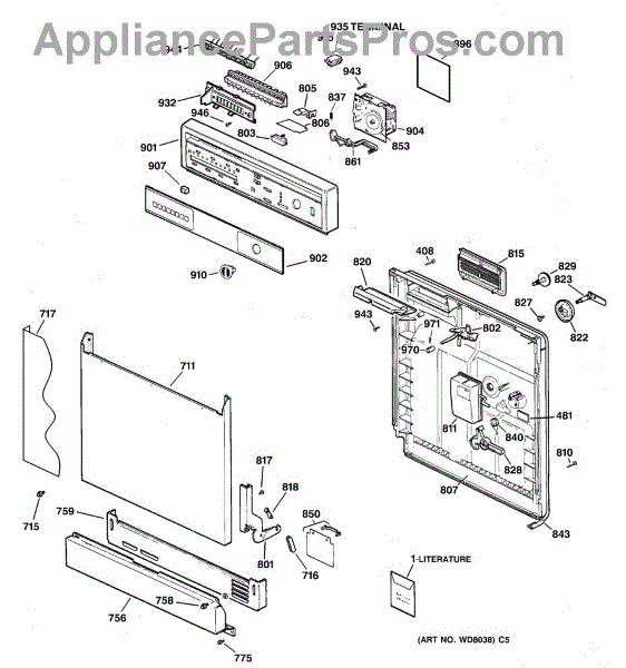 Parts for Ge GSD3630ZZ4WW: 01 - Escutcheon & Door Assembly Parts