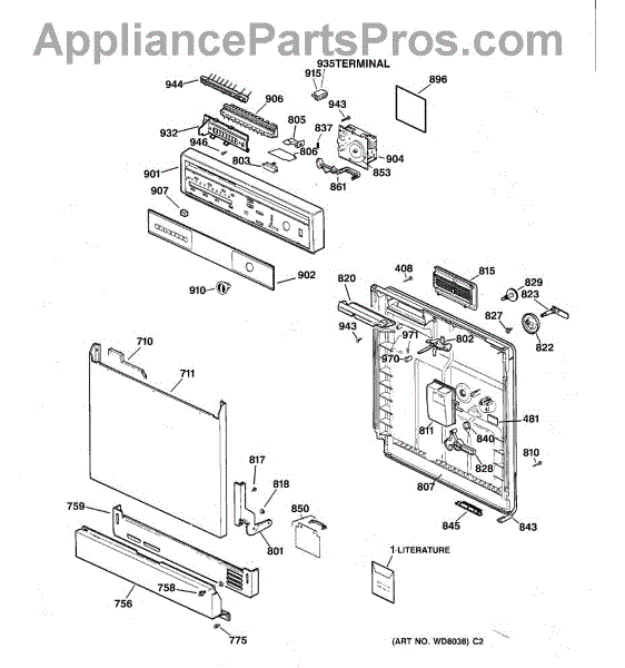 The Soap Dispenser Lever is an OEM part for GE dishwashers. It operates the soap dispenser door, releasing detergent into the dishwasher at the appropriate time during the wash cycle. This lever ensures that detergent is dispensed efficiently for optimal cleaning performance.
