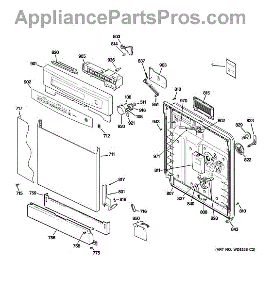 The Soap Dispenser Lever is an OEM part for GE dishwashers. It operates the soap dispenser door, releasing detergent into the dishwasher at the appropriate time during the wash cycle. This lever ensures that detergent is dispensed efficiently for optimal cleaning performance.