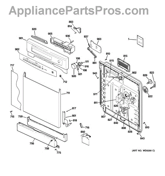 The Soap Dispenser Lever is an OEM part for GE dishwashers. It operates the soap dispenser door, releasing detergent into the dishwasher at the appropriate time during the wash cycle. This lever ensures that detergent is dispensed efficiently for optimal cleaning performance.