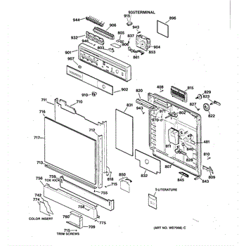 Parts for Ge GSD4130Y04WW: 01 - Escutcheon & Door Assembly Parts