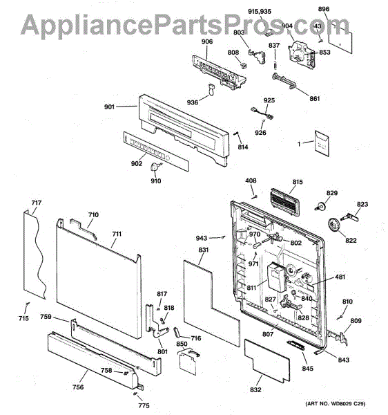 The Soap Dispenser Lever is an OEM part for GE dishwashers. It operates the soap dispenser door, releasing detergent into the dishwasher at the appropriate time during the wash cycle. This lever ensures that detergent is dispensed efficiently for optimal cleaning performance.