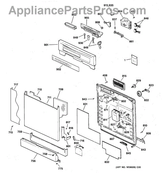 The Soap Dispenser Lever is an OEM part for GE dishwashers. It operates the soap dispenser door, releasing detergent into the dishwasher at the appropriate time during the wash cycle. This lever ensures that detergent is dispensed efficiently for optimal cleaning performance.