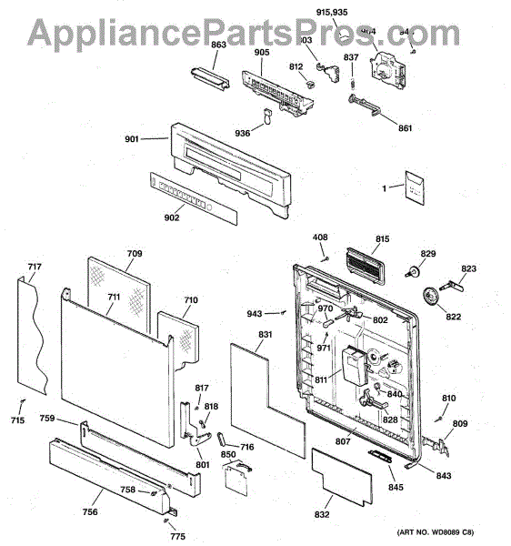 The Soap Dispenser Lever is an OEM part for GE dishwashers. It operates the soap dispenser door, releasing detergent into the dishwasher at the appropriate time during the wash cycle. This lever ensures that detergent is dispensed efficiently for optimal cleaning performance.