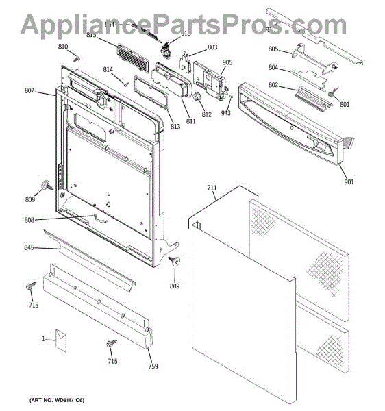 Parts for Ge GSD6560J01SS: 01 - Escutcheon & Door Assembly Parts