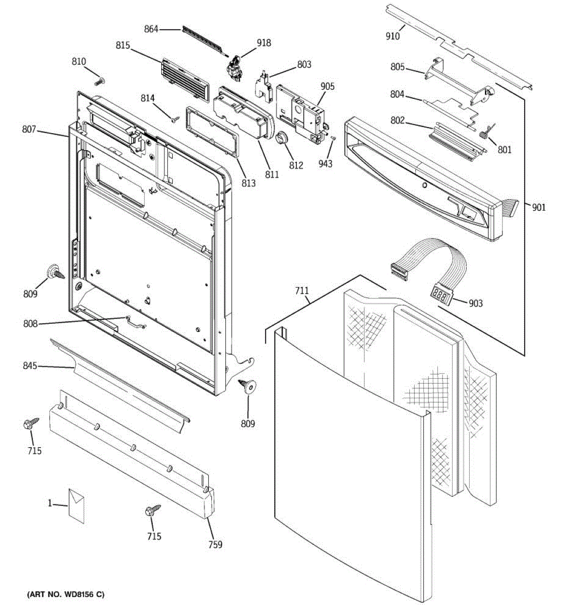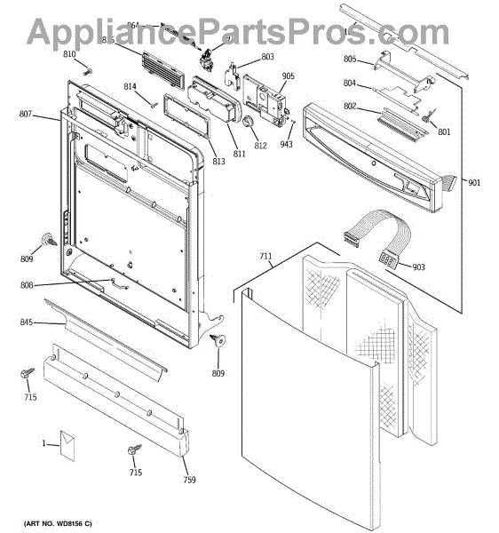 Parts for Ge GSD6900J03WW: 01 - Escutcheon & Door Assembly Parts