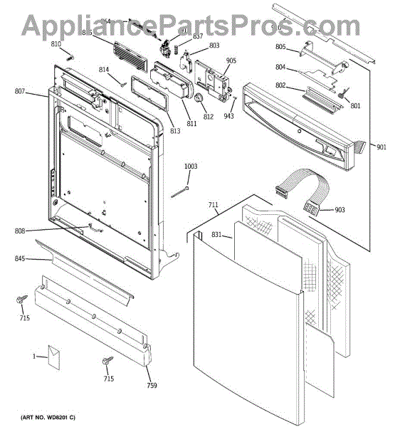 Parts for Ge GSD6960N00SS: 01 - Escutcheon & Door Assembly Parts