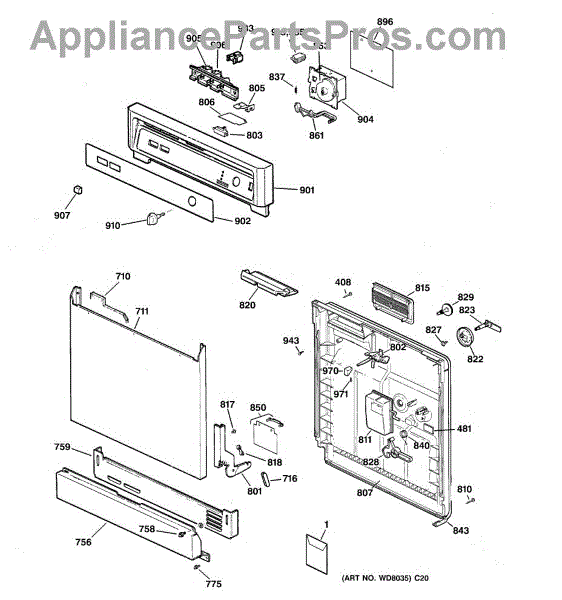 The Soap Dispenser Lever is an OEM part for GE dishwashers. It operates the soap dispenser door, releasing detergent into the dishwasher at the appropriate time during the wash cycle. This lever ensures that detergent is dispensed efficiently for optimal cleaning performance.