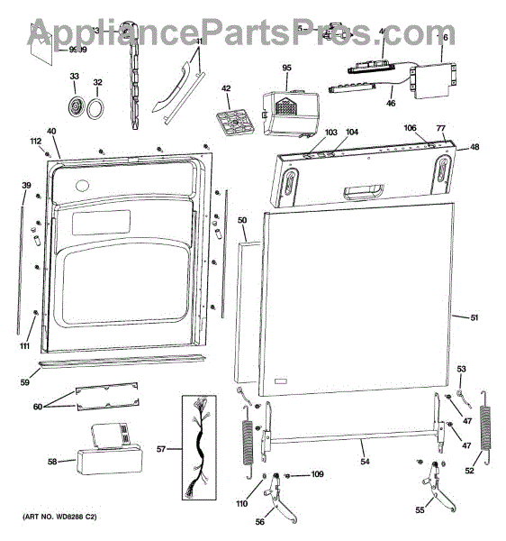 This is a door hinge spring that is used on dishwashers. This dishwasher door hinge spring prevents the dishwasher door from dropping open or slamming shut. It allows the movement to be controlled and smooth rather than abrupt and forceful. Each dishwasher unit has two springs at the bottom, one on each side.A new dishwasher door hinge spring may be needed if the dishwasher door is dropping open without any resistance or if it is slamming shut without any resistance. The springs provide tension to prevent these opening and closing concerns, so if that tension is missing, it is time to replace the springs on the dishwasher door.This is a genuine General Electric part and is an OEM part sourced directly from the manufacturer. It is sold individually. This specific dishwasher door hinge spring is compatible with dishwashers that are manufactured by the General Electric brand.