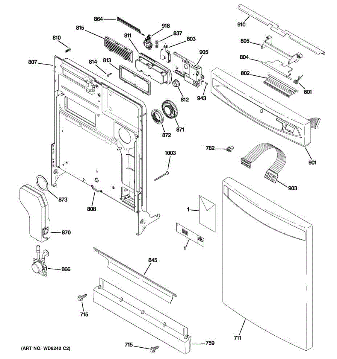 The GE latch handle is an OEM replacement part responsible for allowing the opening and closing of the dishwasher door. Located on the inner door panel, this part ensures that the dishwasher door latches securely when the machine is in operation, preventing any leaks or disruptions in the cleaning process. Additionally, it provides a convenient means for users to open and close the dishwasher, allowing easy access to load and unload dishes. This GE part can also be used on Hotpoint, RCA, and Kenmore/Sears appliances. This part fixes the following symptoms