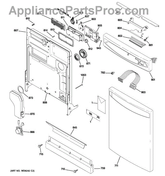The GE latch handle is an OEM replacement part responsible for allowing the opening and closing of the dishwasher door. Located on the inner door panel, this part ensures that the dishwasher door latches securely when the machine is in operation, preventing any leaks or disruptions in the cleaning process. Additionally, it provides a convenient means for users to open and close the dishwasher, allowing easy access to load and unload dishes. This GE part can also be used on Hotpoint, RCA, and Kenmore/Sears appliances. This part fixes the following symptoms