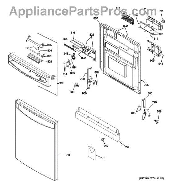 Parts for Ge PDW8200J10CC: 01 - Escutcheon & Door Assembly Parts