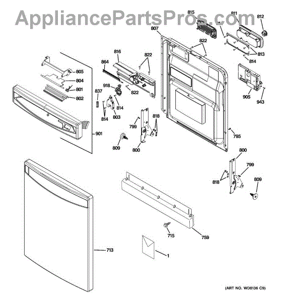 Parts for Ge PDW8280N00SS: 01 - Escutcheon & Door Assembly Parts