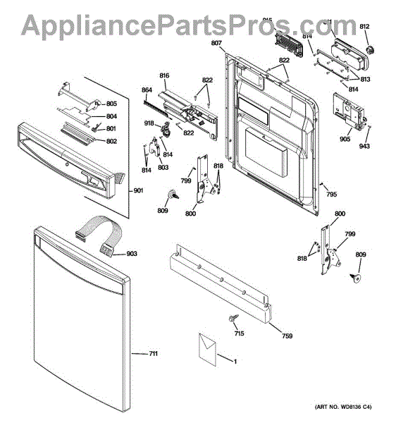 The GE latch handle is an OEM replacement part responsible for allowing the opening and closing of the dishwasher door. Located on the inner door panel, this part ensures that the dishwasher door latches securely when the machine is in operation, preventing any leaks or disruptions in the cleaning process. Additionally, it provides a convenient means for users to open and close the dishwasher, allowing easy access to load and unload dishes. This GE part can also be used on Hotpoint, RCA, and Kenmore/Sears appliances. This part fixes the following symptoms