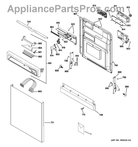 The GE latch handle is an OEM replacement part responsible for allowing the opening and closing of the dishwasher door. Located on the inner door panel, this part ensures that the dishwasher door latches securely when the machine is in operation, preventing any leaks or disruptions in the cleaning process. Additionally, it provides a convenient means for users to open and close the dishwasher, allowing easy access to load and unload dishes. This GE part can also be used on Hotpoint, RCA, and Kenmore/Sears appliances. This part fixes the following symptoms
