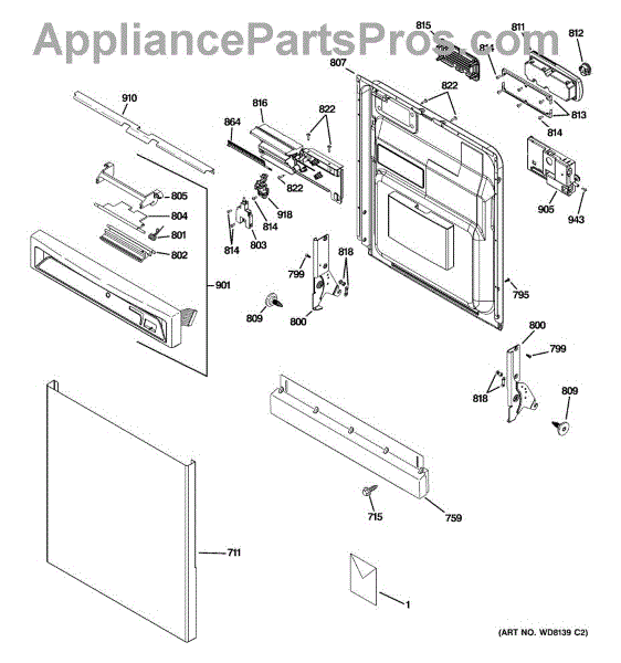 The GE latch handle is an OEM replacement part responsible for allowing the opening and closing of the dishwasher door. Located on the inner door panel, this part ensures that the dishwasher door latches securely when the machine is in operation, preventing any leaks or disruptions in the cleaning process. Additionally, it provides a convenient means for users to open and close the dishwasher, allowing easy access to load and unload dishes. This GE part can also be used on Hotpoint, RCA, and Kenmore/Sears appliances. This part fixes the following symptoms
