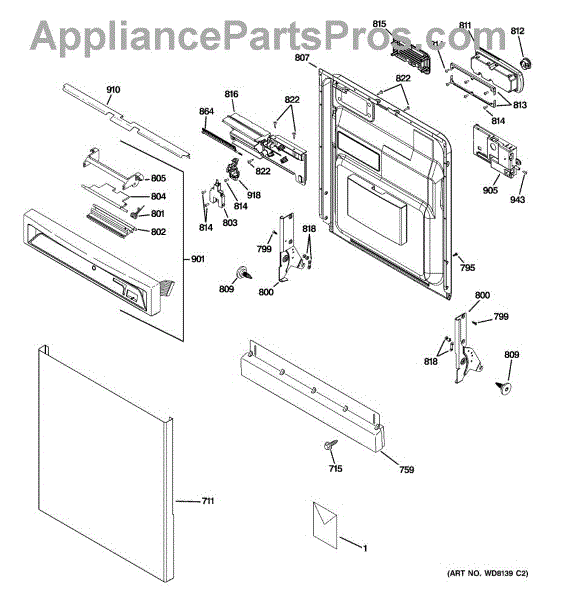 Parts for Ge PDW8510J10BB: 01 - Escutcheon & Door Assembly Parts