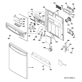 The Detergent and Rinse Aid Dispenser is an OEM part for GE dishwashers. It is responsible for holding and releasing detergent and rinse aid during the dishwashing cycle, ensuring that dishes are cleaned and rinsed effectively.
