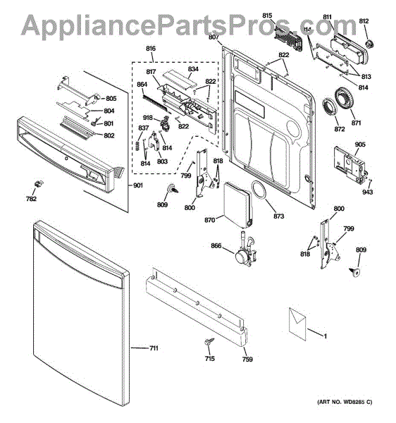 The GE latch handle is an OEM replacement part responsible for allowing the opening and closing of the dishwasher door. Located on the inner door panel, this part ensures that the dishwasher door latches securely when the machine is in operation, preventing any leaks or disruptions in the cleaning process. Additionally, it provides a convenient means for users to open and close the dishwasher, allowing easy access to load and unload dishes. This GE part can also be used on Hotpoint, RCA, and Kenmore/Sears appliances. This part fixes the following symptoms