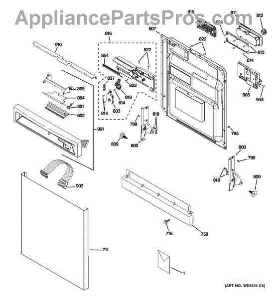 The GE latch handle is an OEM replacement part responsible for allowing the opening and closing of the dishwasher door. Located on the inner door panel, this part ensures that the dishwasher door latches securely when the machine is in operation, preventing any leaks or disruptions in the cleaning process. Additionally, it provides a convenient means for users to open and close the dishwasher, allowing easy access to load and unload dishes. This GE part can also be used on Hotpoint, RCA, and Kenmore/Sears appliances. This part fixes the following symptoms