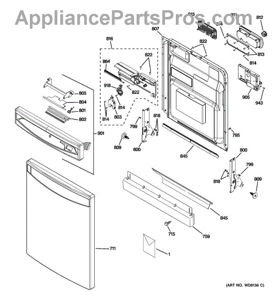 The GE latch handle is an OEM replacement part responsible for allowing the opening and closing of the dishwasher door. Located on the inner door panel, this part ensures that the dishwasher door latches securely when the machine is in operation, preventing any leaks or disruptions in the cleaning process. Additionally, it provides a convenient means for users to open and close the dishwasher, allowing easy access to load and unload dishes. This GE part can also be used on Hotpoint, RCA, and Kenmore/Sears appliances. This part fixes the following symptoms