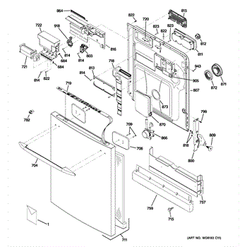 The Detergent and Rinse Aid Dispenser is an OEM part for GE dishwashers. It is responsible for holding and releasing detergent and rinse aid during the dishwashing cycle, ensuring that dishes are cleaned and rinsed effectively.