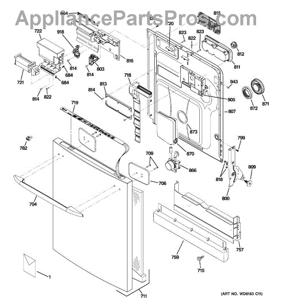 The Detergent and Rinse Aid Dispenser is an OEM part for GE dishwashers. It is responsible for holding and releasing detergent and rinse aid during the dishwashing cycle, ensuring that dishes are cleaned and rinsed effectively.