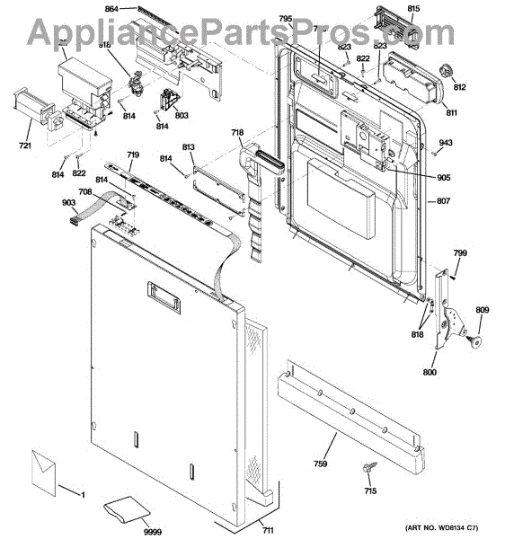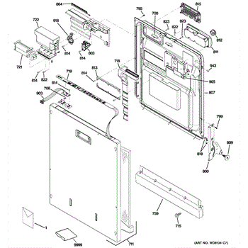 The Detergent and Rinse Aid Dispenser is an OEM part for GE dishwashers. It is responsible for holding and releasing detergent and rinse aid during the dishwashing cycle, ensuring that dishes are cleaned and rinsed effectively.