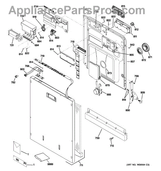 The Detergent and Rinse Aid Dispenser is an OEM part for GE dishwashers. It is responsible for holding and releasing detergent and rinse aid during the dishwashing cycle, ensuring that dishes are cleaned and rinsed effectively.
