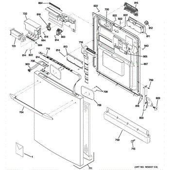 The Detergent and Rinse Aid Dispenser is an OEM part for GE dishwashers. It is responsible for holding and releasing detergent and rinse aid during the dishwashing cycle, ensuring that dishes are cleaned and rinsed effectively.