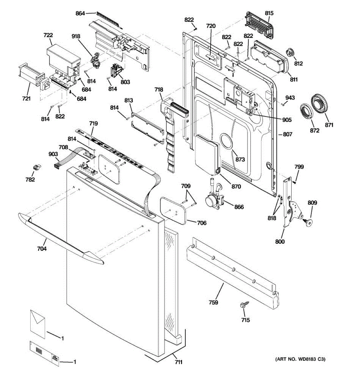 The Detergent and Rinse Aid Dispenser is an OEM part for GE dishwashers. It is responsible for holding and releasing detergent and rinse aid during the dishwashing cycle, ensuring that dishes are cleaned and rinsed effectively.