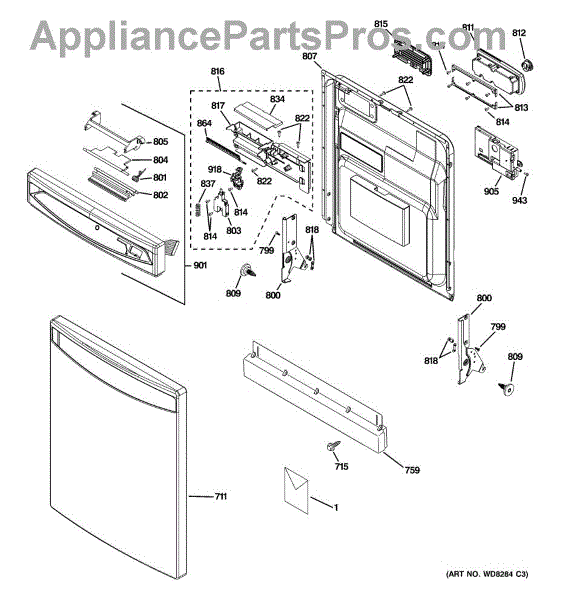 The GE latch handle is an OEM replacement part responsible for allowing the opening and closing of the dishwasher door. Located on the inner door panel, this part ensures that the dishwasher door latches securely when the machine is in operation, preventing any leaks or disruptions in the cleaning process. Additionally, it provides a convenient means for users to open and close the dishwasher, allowing easy access to load and unload dishes. This GE part can also be used on Hotpoint, RCA, and Kenmore/Sears appliances. This part fixes the following symptoms